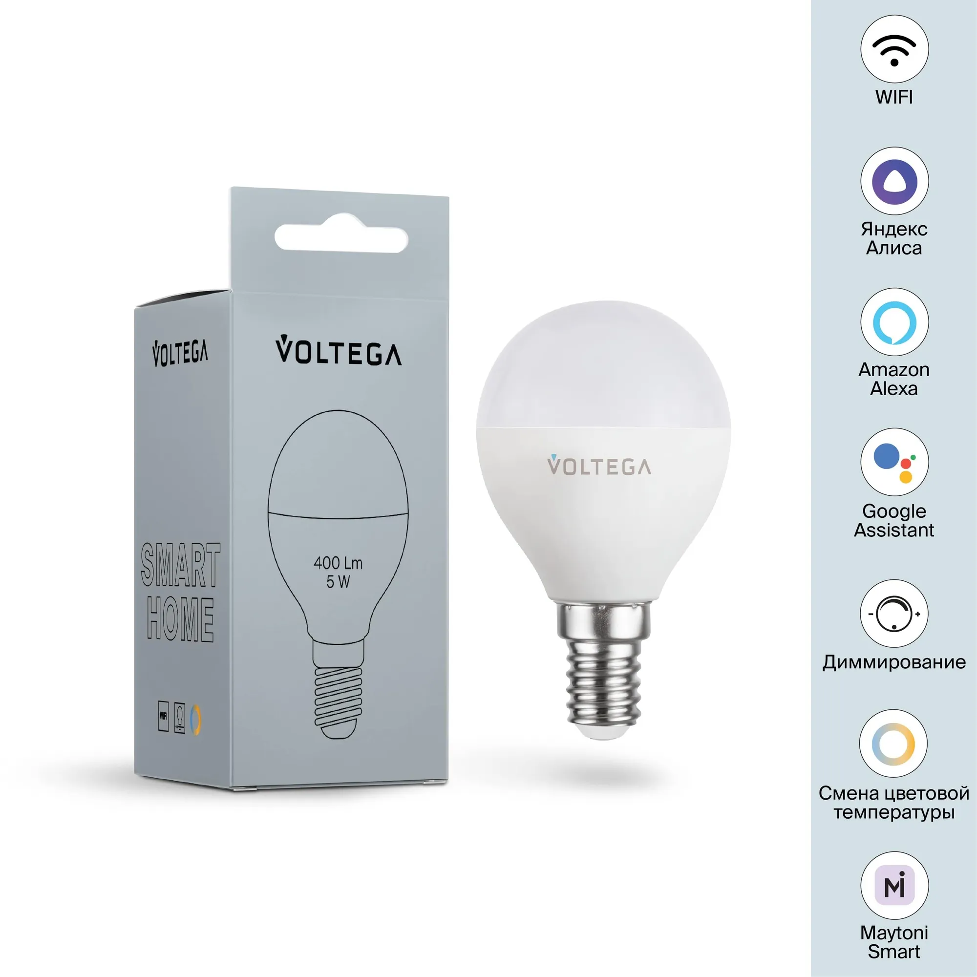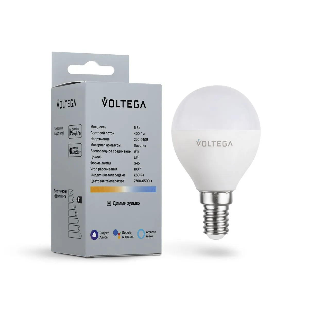 Лампа светодиодная диммируемая Voltega E14 5W 2700К матовая VG-G45E14cct-WIFI-5W 2428 купить в Лобне по лучшей цене