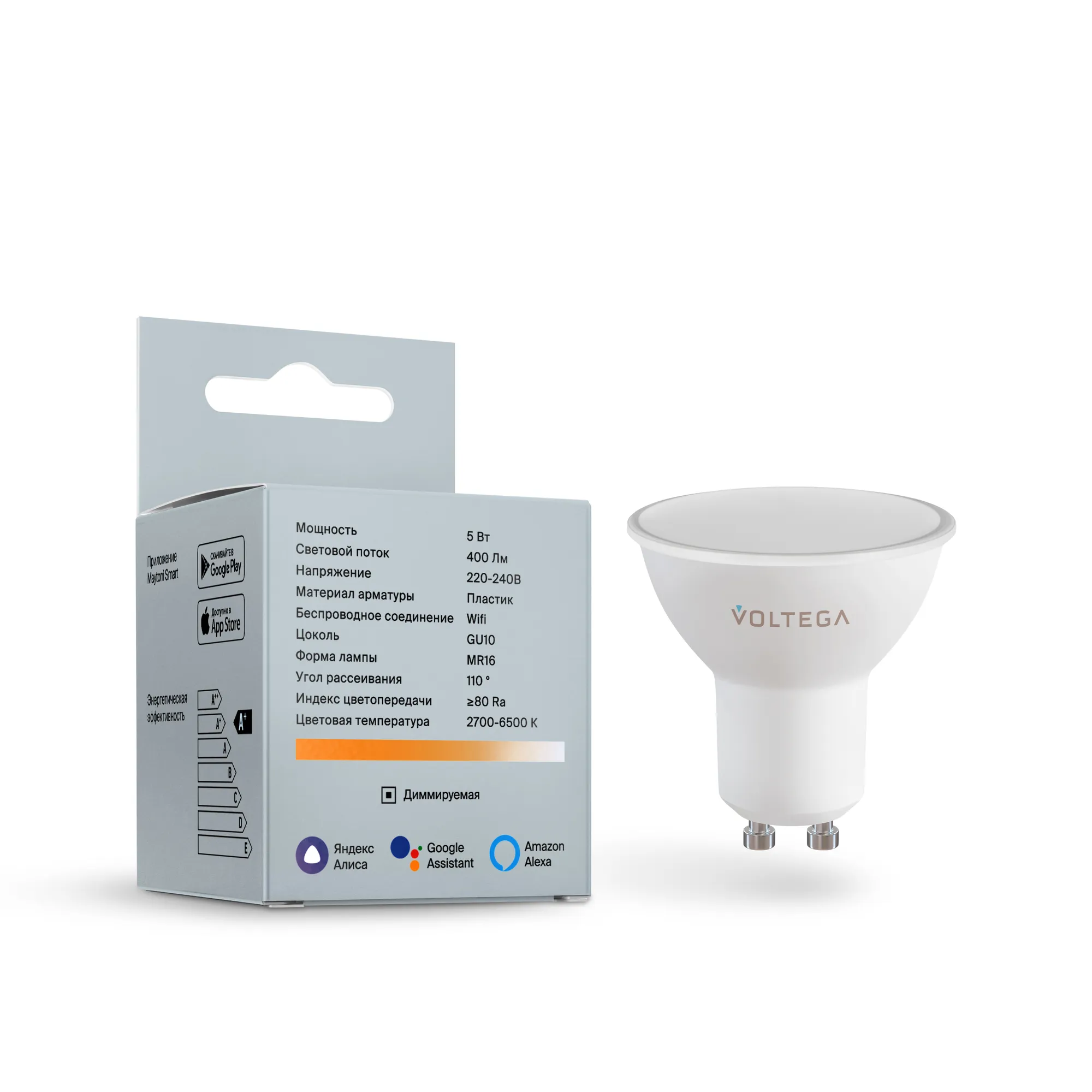 Лампа светодиодная диммируемая Voltega GU10 5W 2700К матовая VG-MR16GU10cct-WIFI-5W 2425 купить в Лобне по лучшей цене