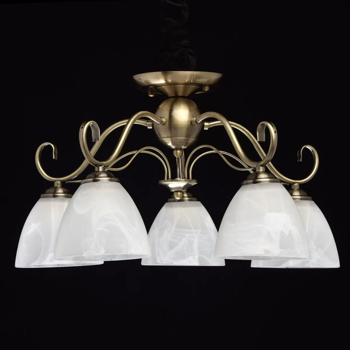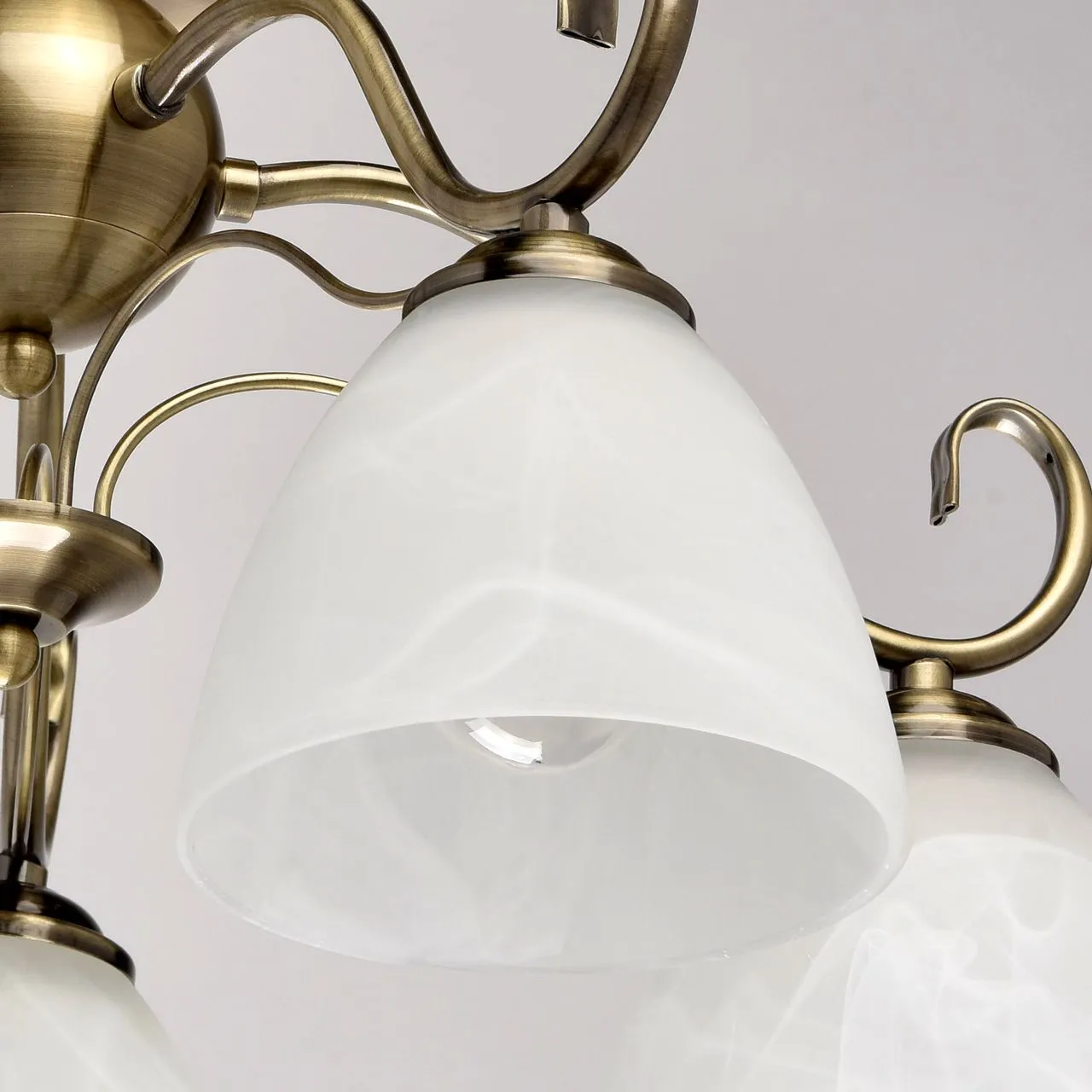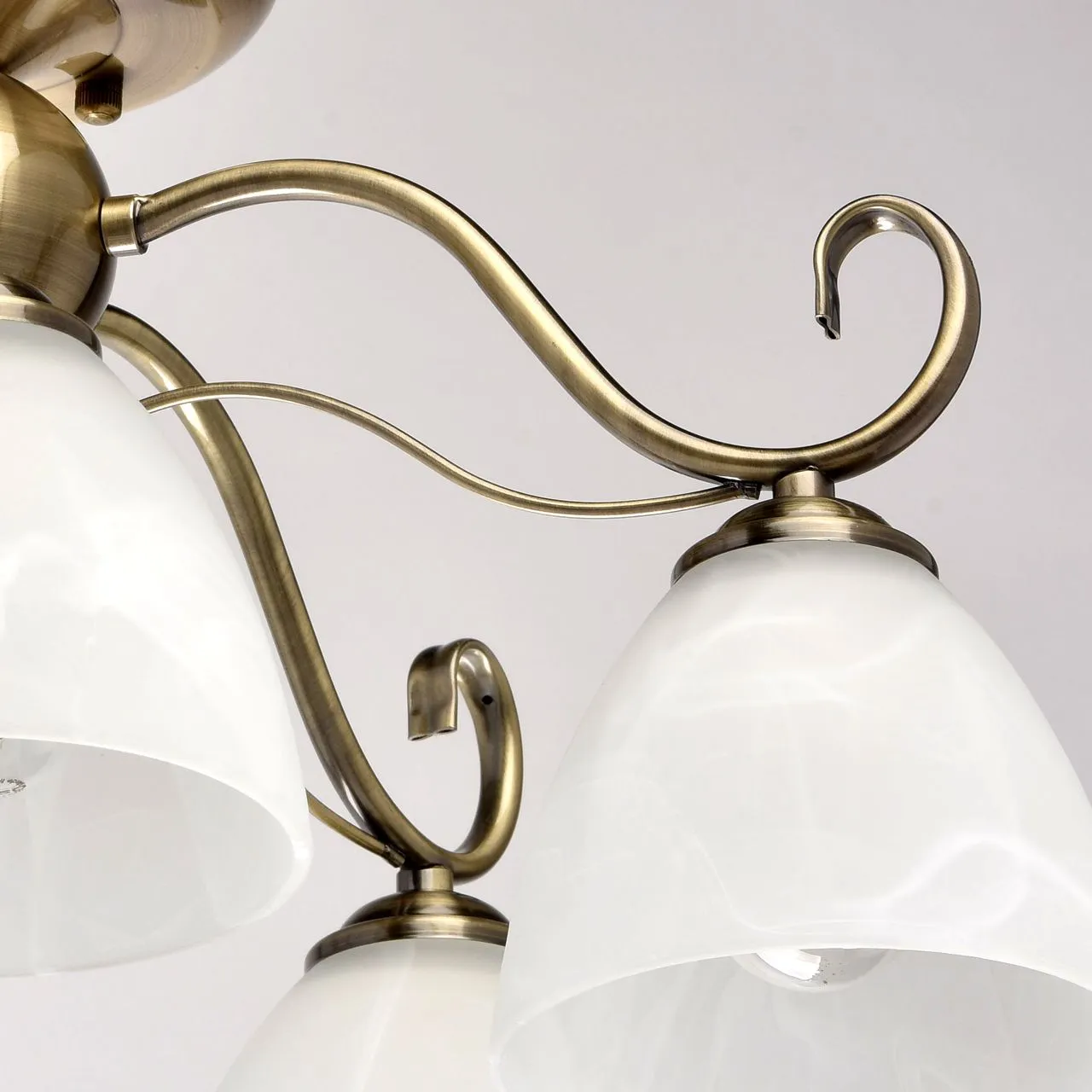 Металлическое основание цвета античной бронзы. Плафоны - алебастровое стекло.