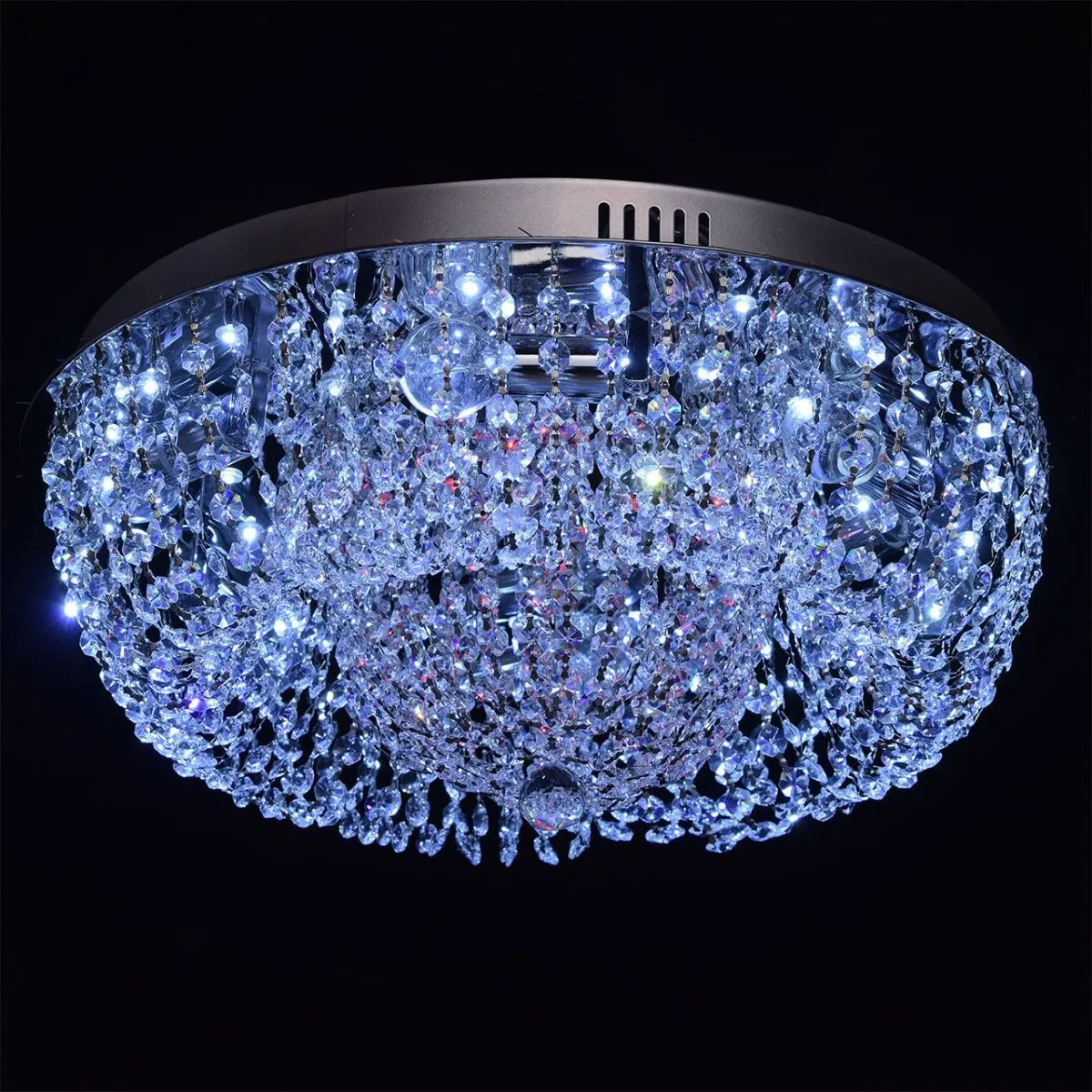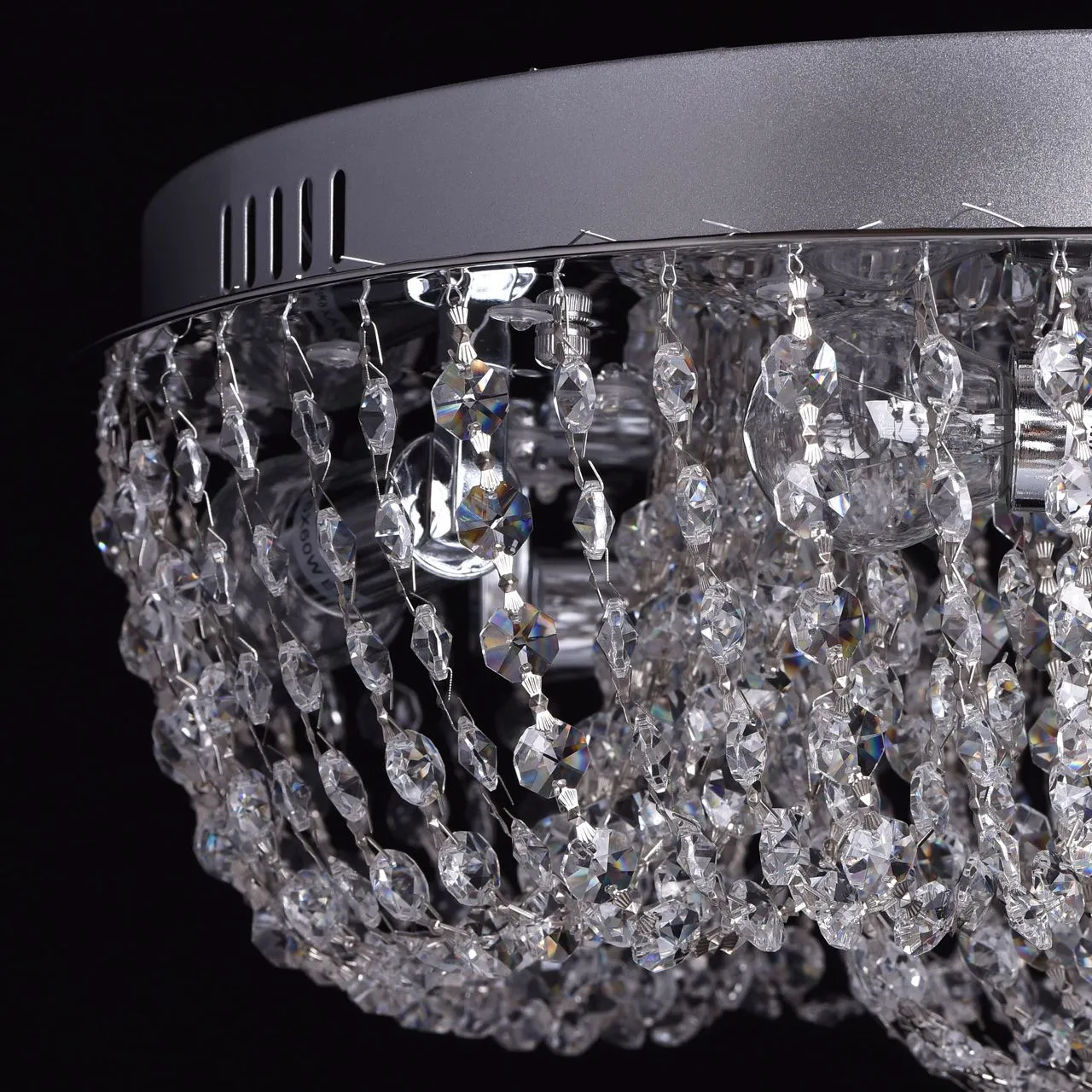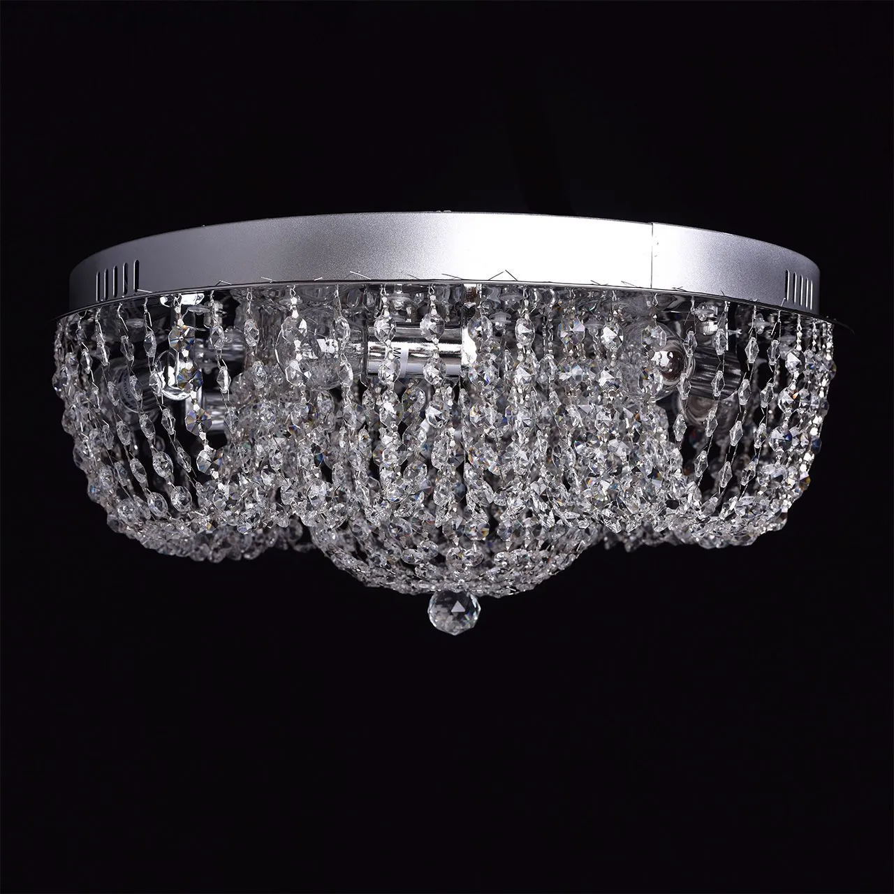 Металлическое основание цвета хрома, декоративные элементы из хрустального стекла.