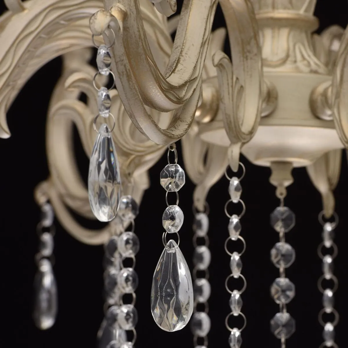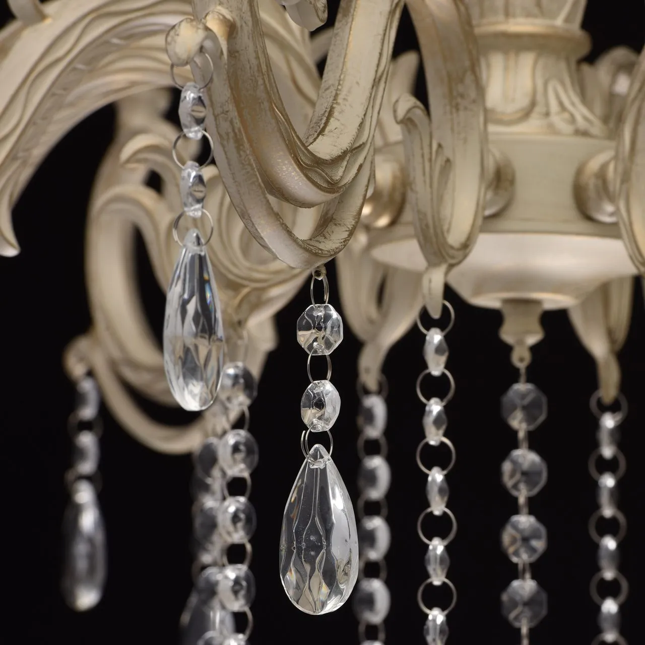 Металлическое основание белого цвета с золотой патиной. Декор: декоративное стекло.