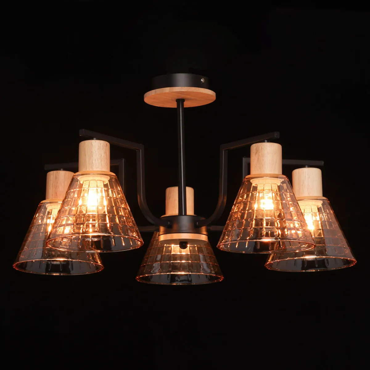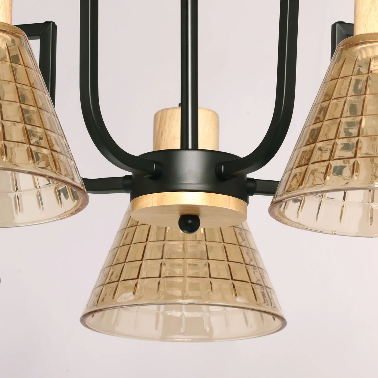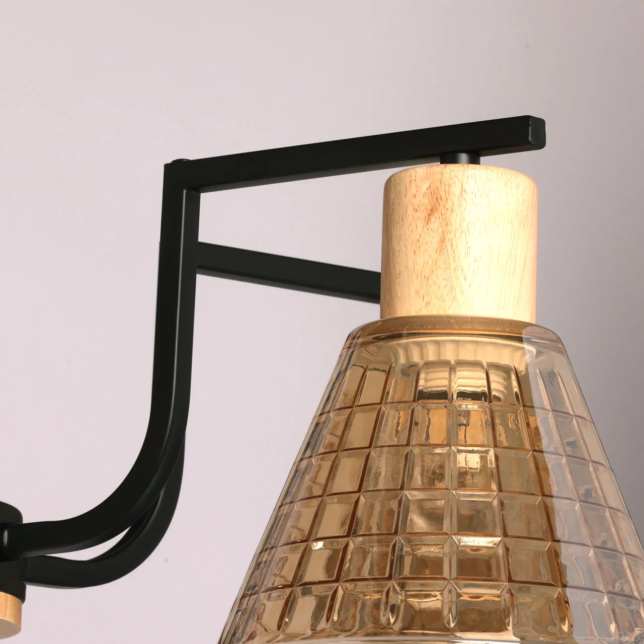 Основание/ металл/ черный Плафон/ стекло/ шампань Декор/ дерево/ натуральное