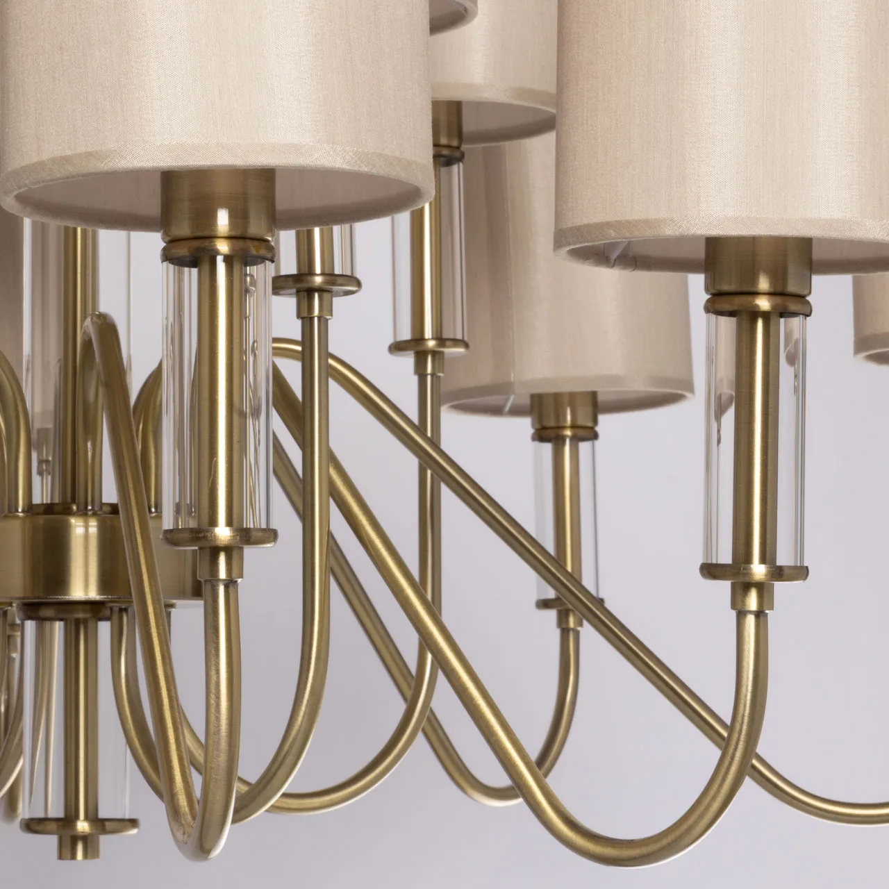 Основание/ металл/ античная бронза Абажур/ текстиль, акрил/ кофе с молоком, прозрачный Декор/ сте