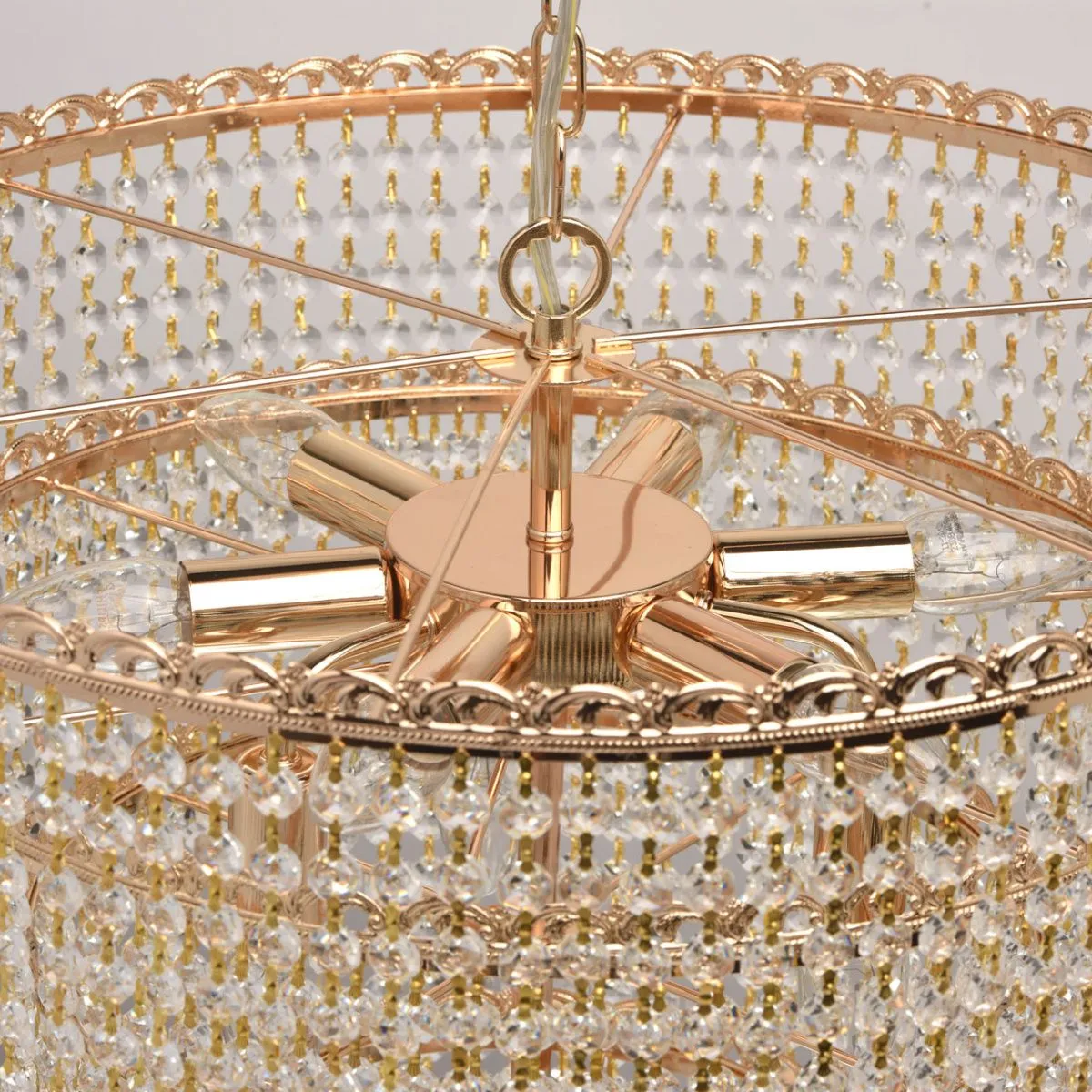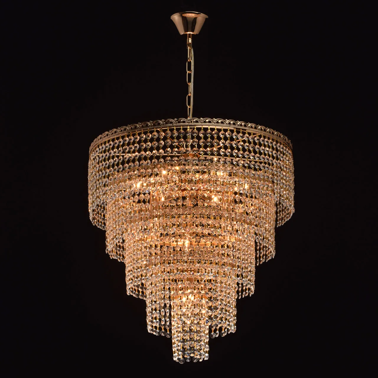 Металлическое основание цвета французское золото. Декор - подвески из хрусталя.