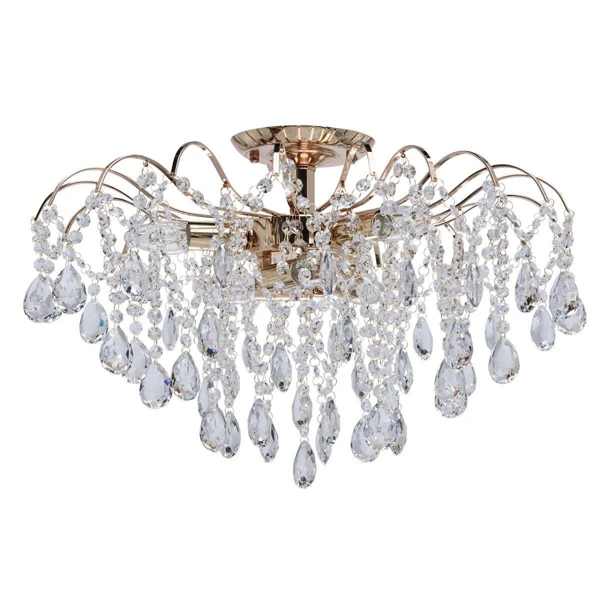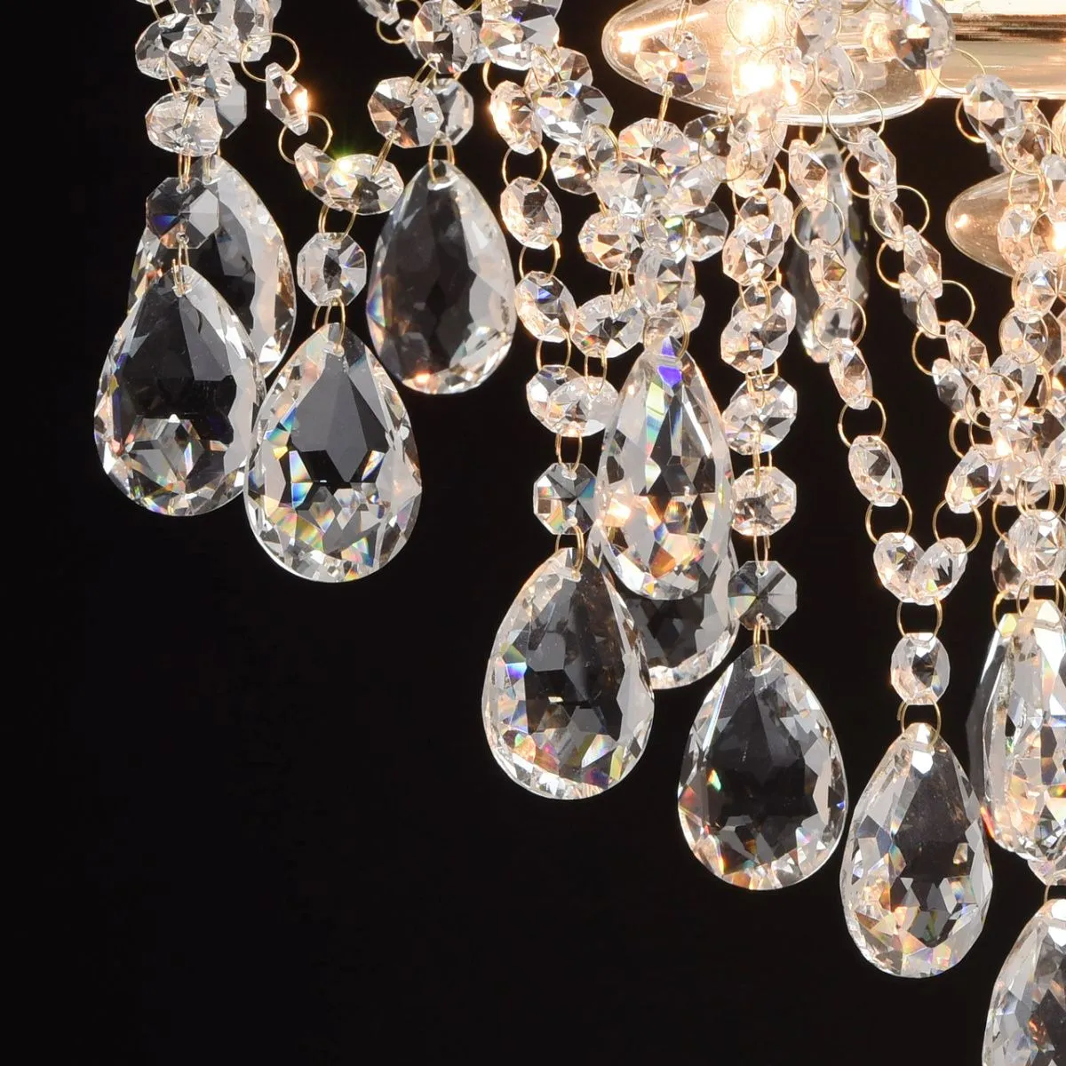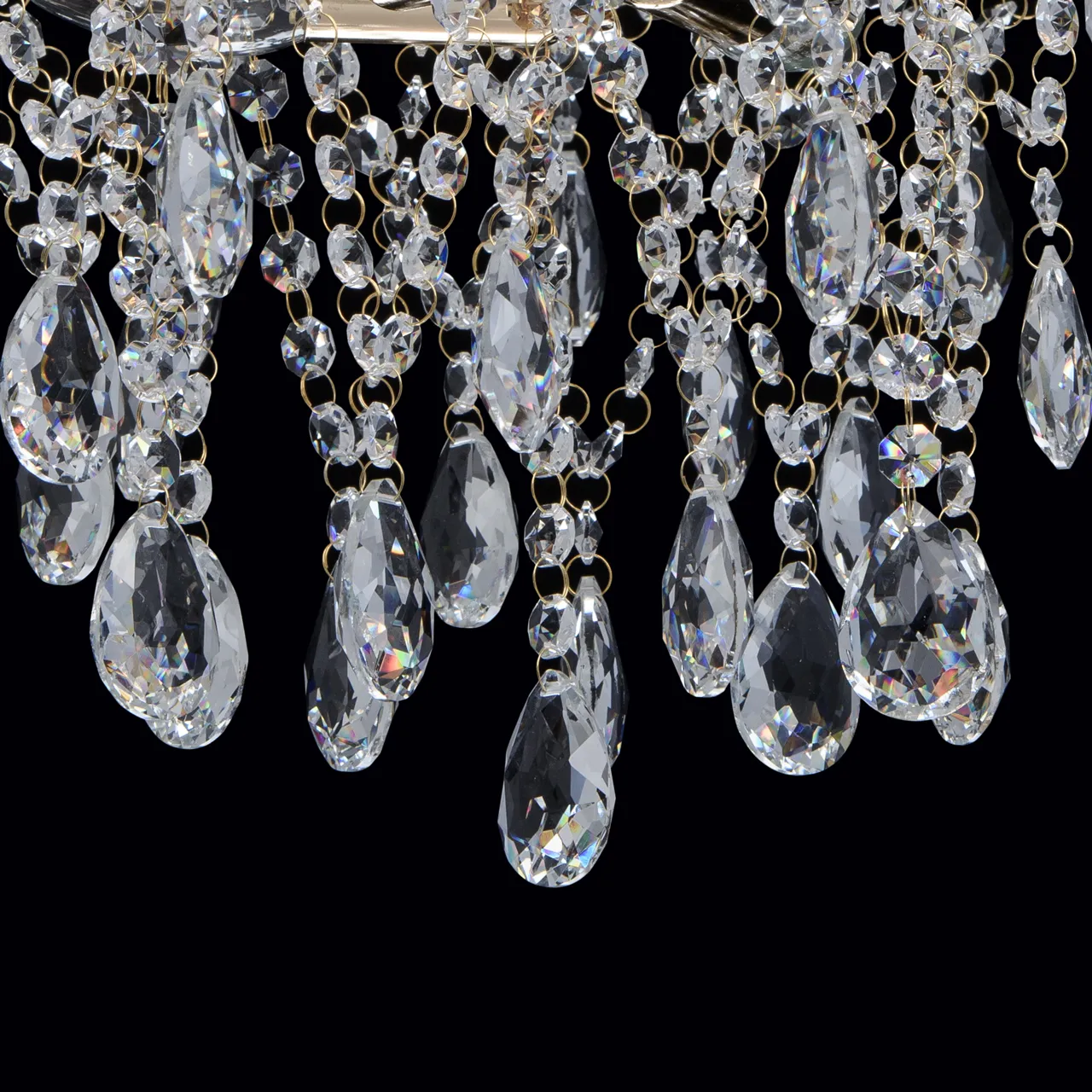 Металлическое основание цвета золота, декоративные подвески из хрустального стекла.