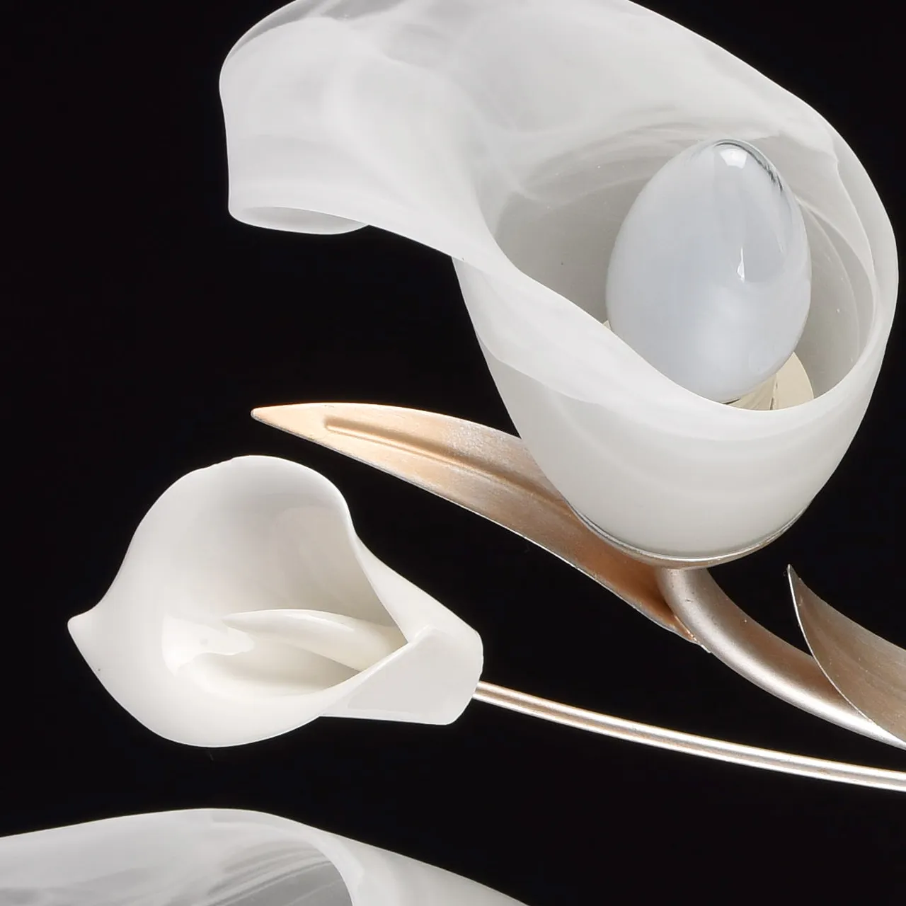 Основание из металла цвета серебра дополнено патинированием в цвет золота. Плафоны из опалового стек