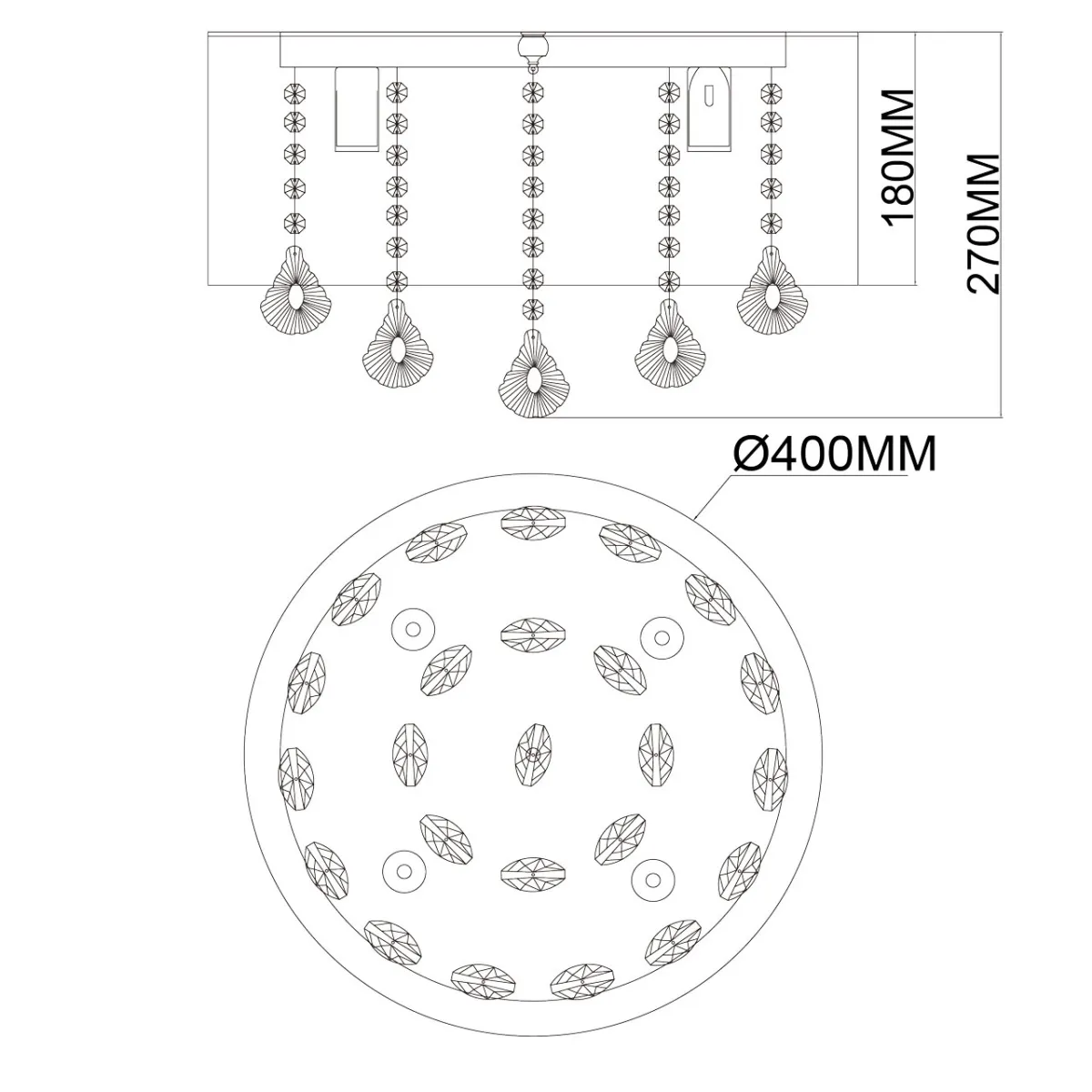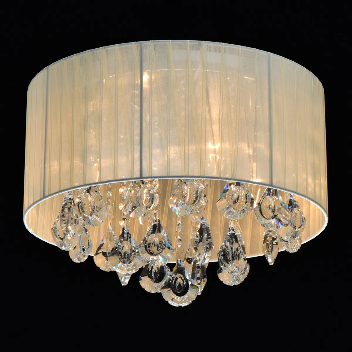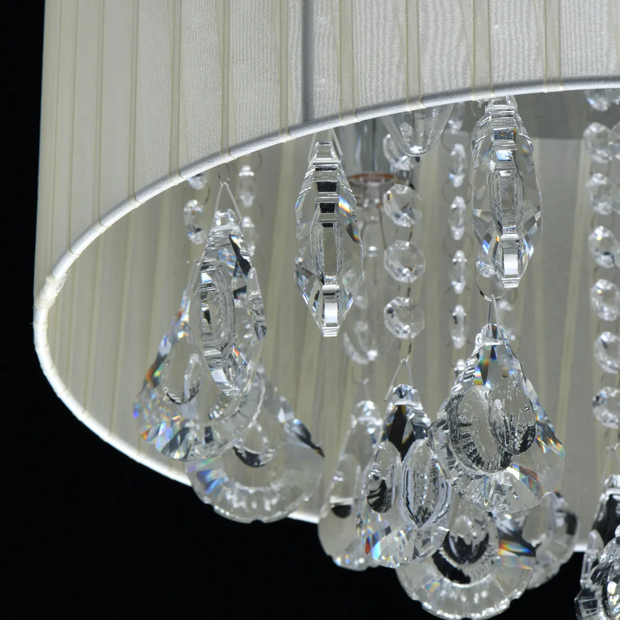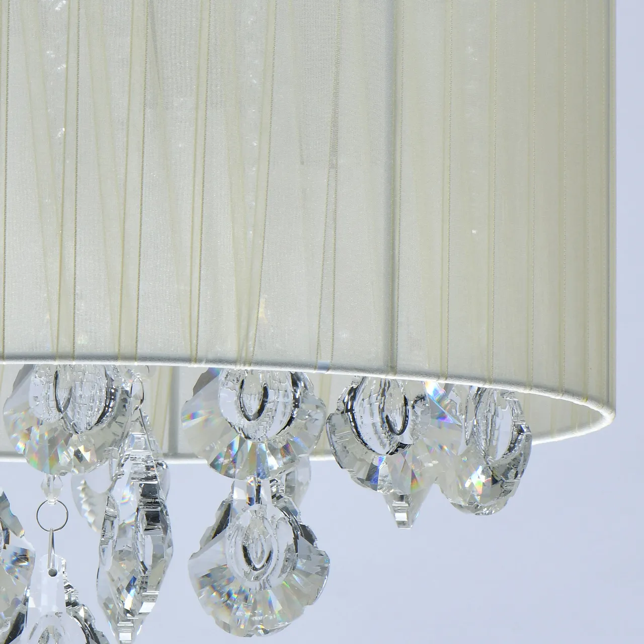 Основание/металл/хром Плафон/органза/бежевый Декор/хрусталь/прозрачный