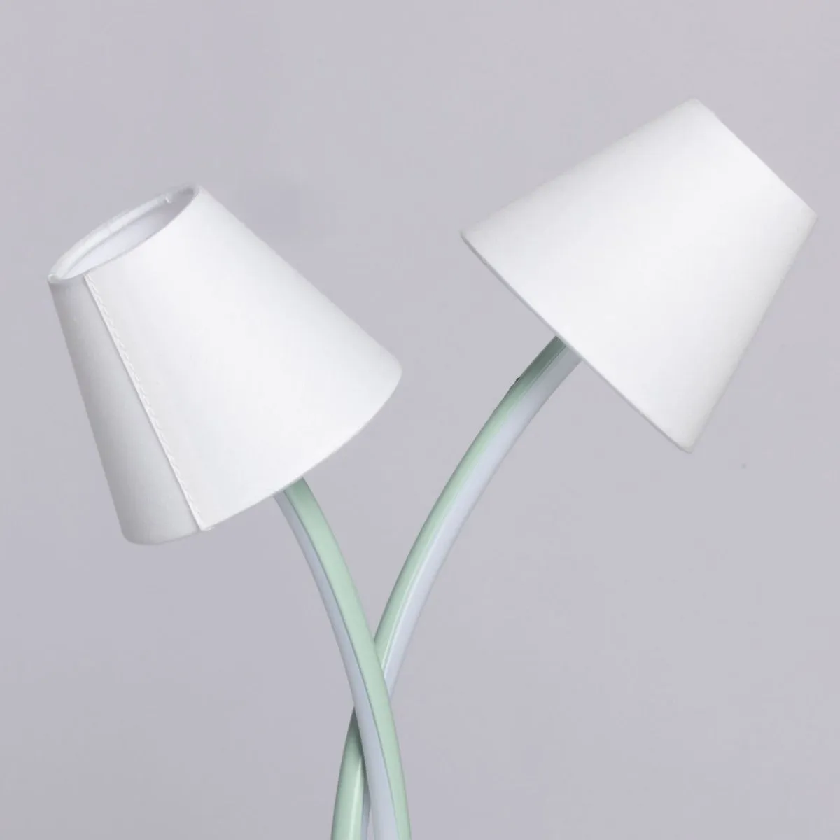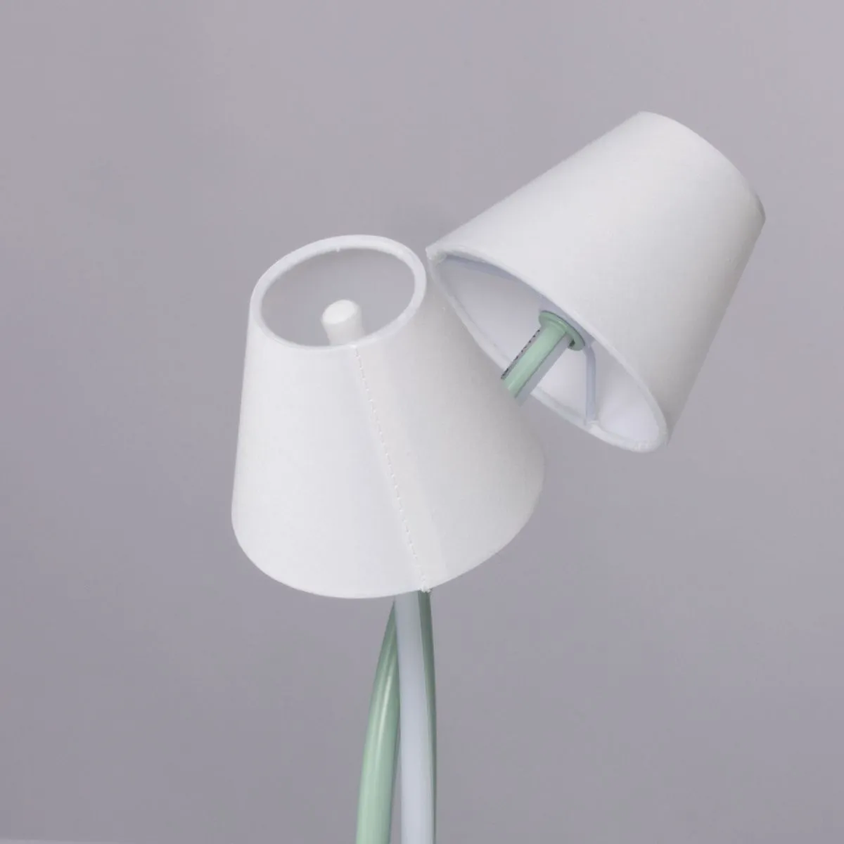 Основание/ металл/ зеленый Плафон/ сплав алюминия, силикон/ зеленый, белый Абажур/ текстиль, акрил