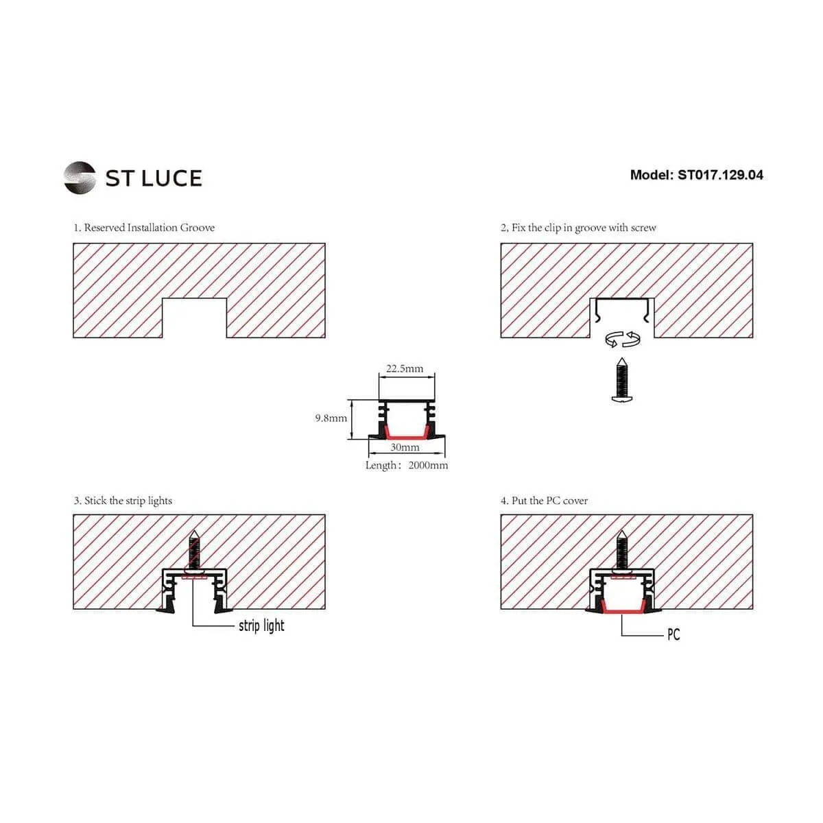 Профиль встраиваемый с рассеивателем ST-Luce ST017.129.04